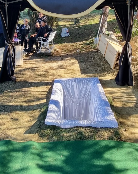 Právě Robert nesl pohřeb nejtěžší ze všech. Když zakopávali truhly, ze všech sil křičel maďarsky: „Vraťte se mi, prosím, vraťte se.“ Museli ho držet čtyři chlapi, aby neskočil za ženou a dětmi do truhly. Na závěr dali přítomným modré balónky, které symbolicky vypustily do nebe.