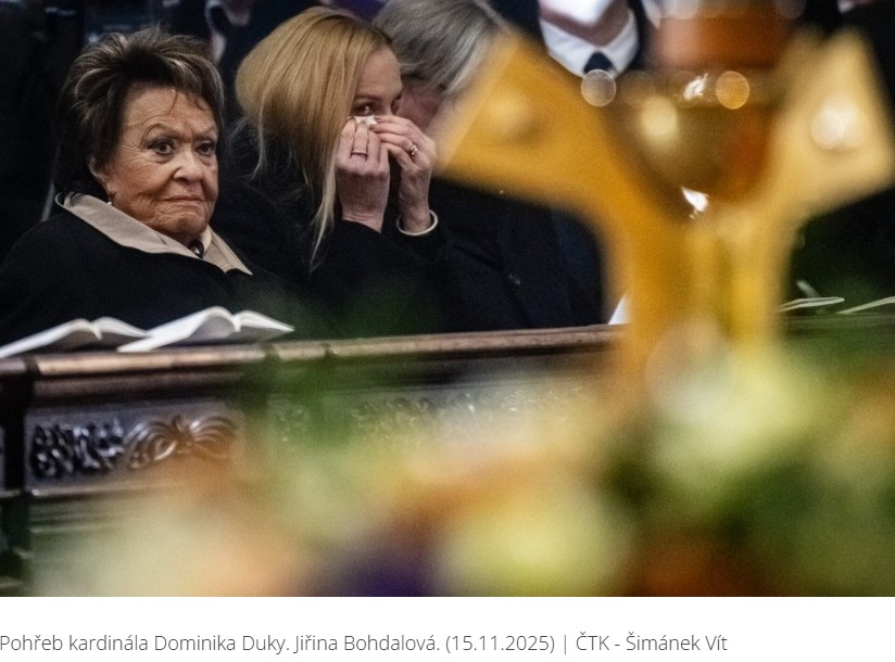 Mezi hosty však vynikala herečka Jiřina Bohdalová, která kardinála znala desítky let a označovala ho za blízkého přítele. Se smutkem přiznala, že poslední osobní rozloučení nestihla – když byl Duka znovu hospitalizován, Bohdalová pobývala na Tenerife. „Měla jsem mu toho ještě tolik co říct,“ řekla tiše u katedrály.