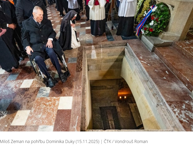 Ztráta Dominika Duky na něj dolehla viditelně. Při posledním nahlédnutí do arcibiskupské hrobky, kam byla rakev uložena bezprostředně po obřadu, bylo na bývalém prezidentovi znát pohnutí, které nepotřebovalo žádný komentář.
