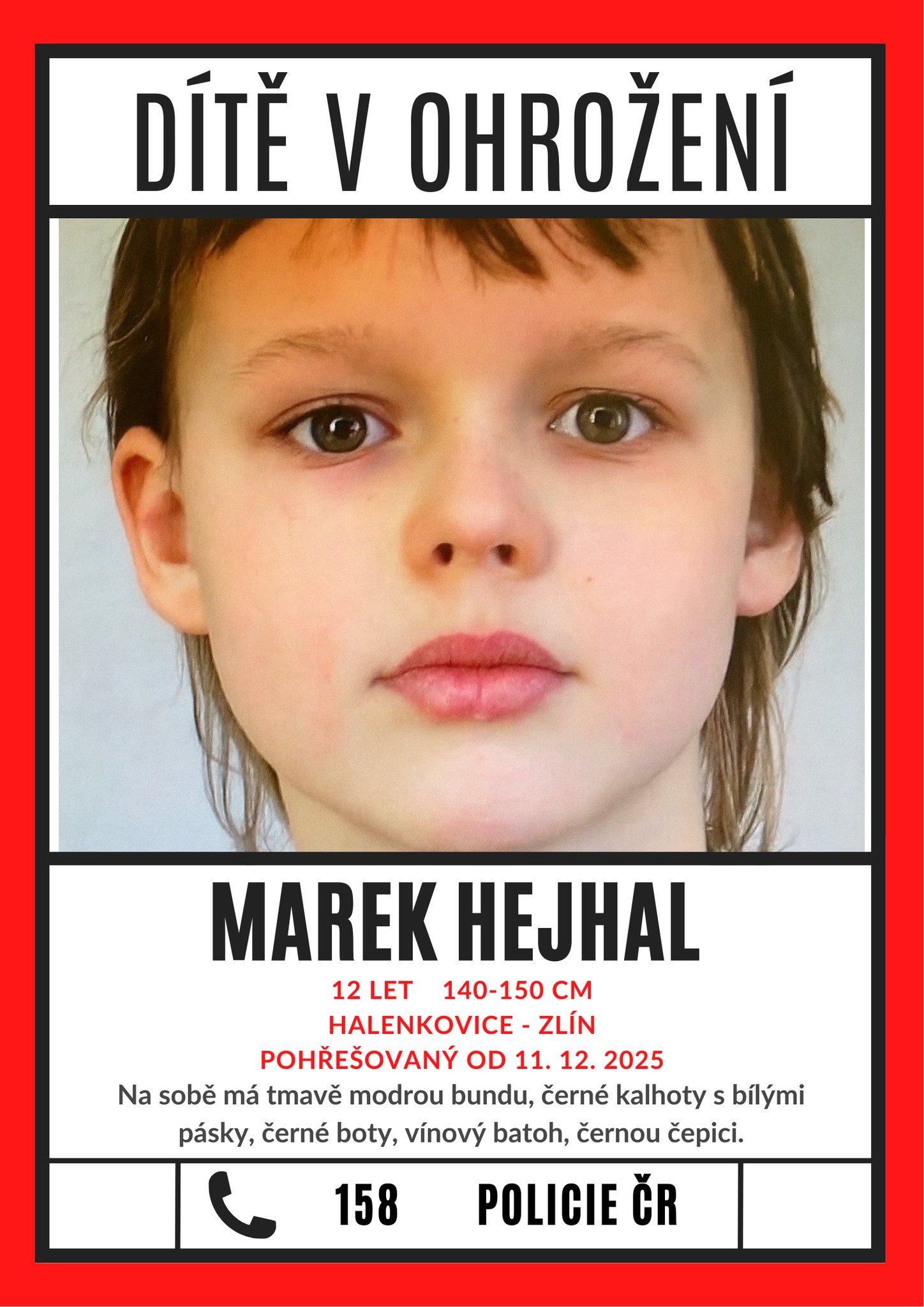 Policie proto znovu apeluje: pokud jste Marka viděli, nebo máte jakékoliv informace o jeho pohybu, neprodleně kontaktujte linku 158. V sázce je čas – a možná i život malého chlapce, po kterém nyní pátrá celé Zlínsko.