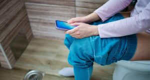 Lidé, kteří při sezení na toaletě dlouho koukají do mobilního telefonu,...